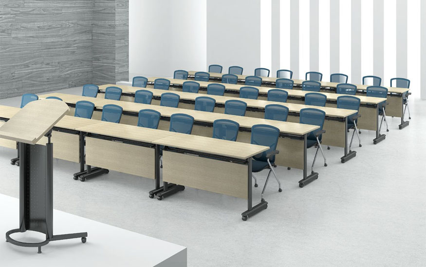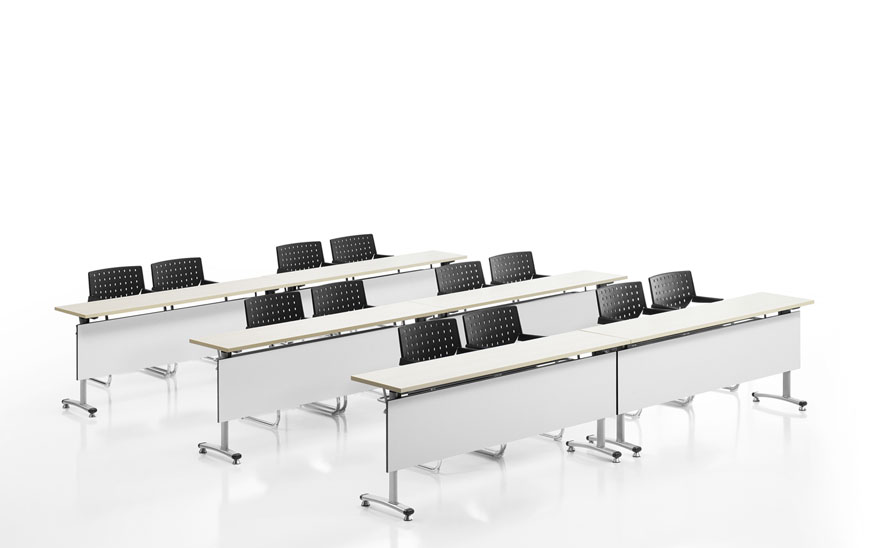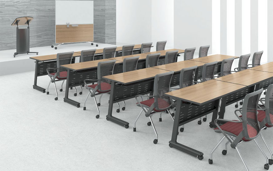 UAT培訓桌給培訓空間帶來了靈活多變的可能性。便于移動的滑輪桌角加上簡便輕松的折疊功能組合使您寶貴的空間得到多元、高效的使用。